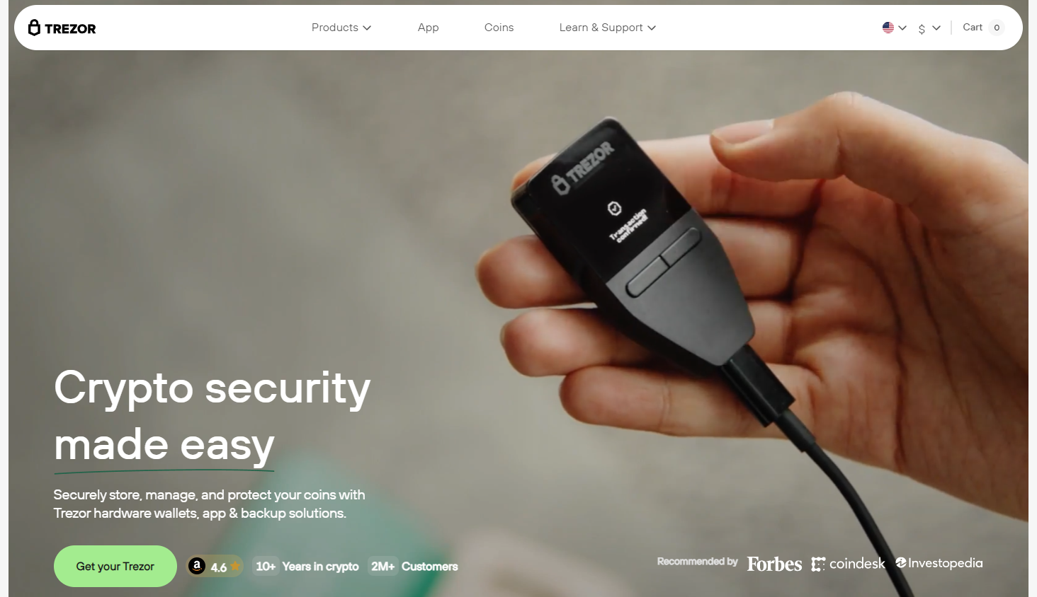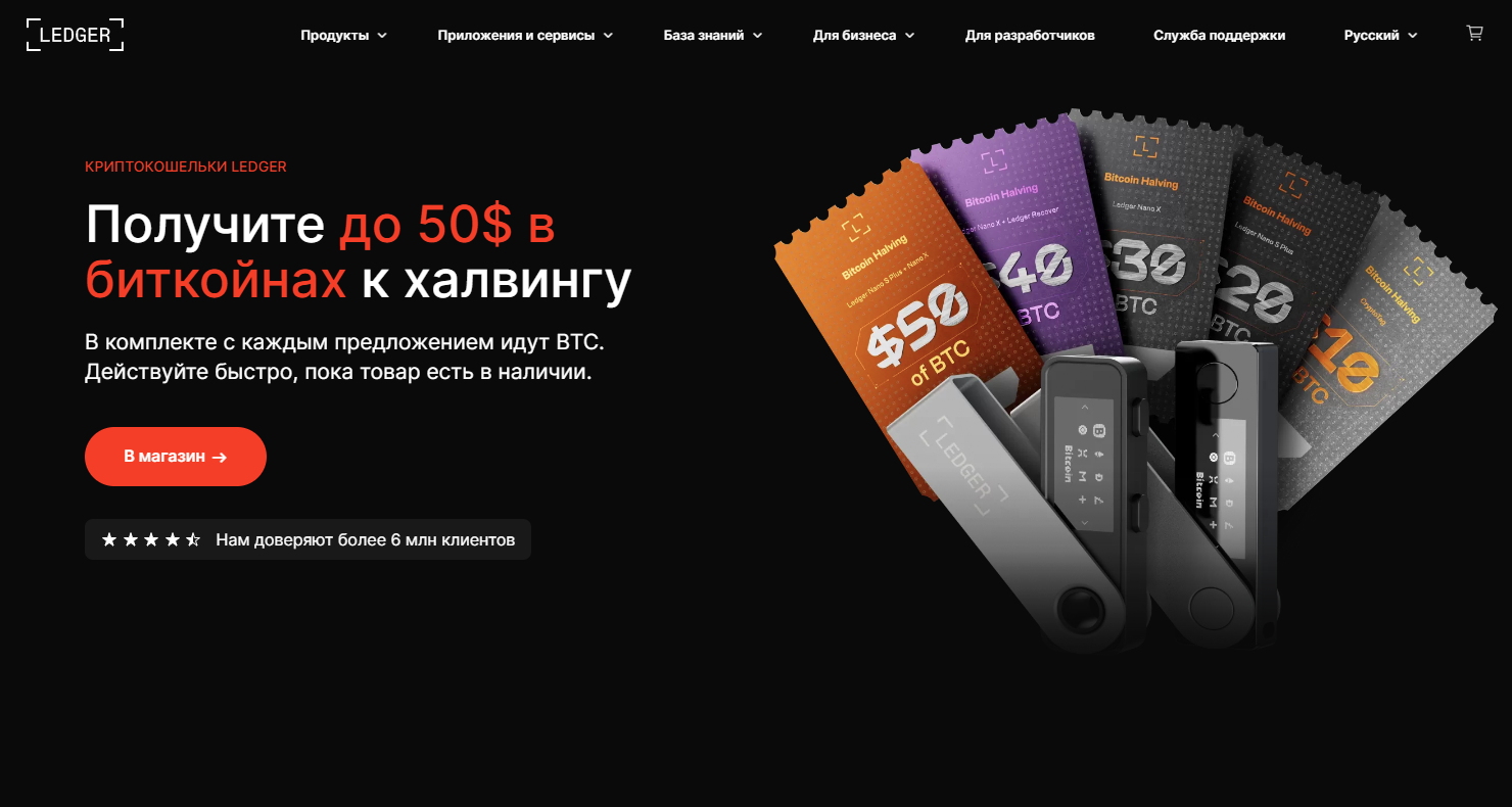 Ledger — один из самых известных аппаратных кошельков в мире. Устройства Ledger (Nano S Plus, Nano X) хранят приватные ключи в защищённом чипе и никогда не передают их в интернет. Для работы требуется подключение к компьютеру или смартфону через USB/Bluetooth и подтверждение каждой транзакции кнопками на самом устройстве. Ledger поддерживает более 5 500 активов, включая BTC, и регулярно проходит независимые аудиты безопасности. Хотя в 2023 году компания столкнулась с критикой из-за попыток внедрить подписанный код, её устройства по-прежнему считаются золотым стандартом для долгосрочного хранения.