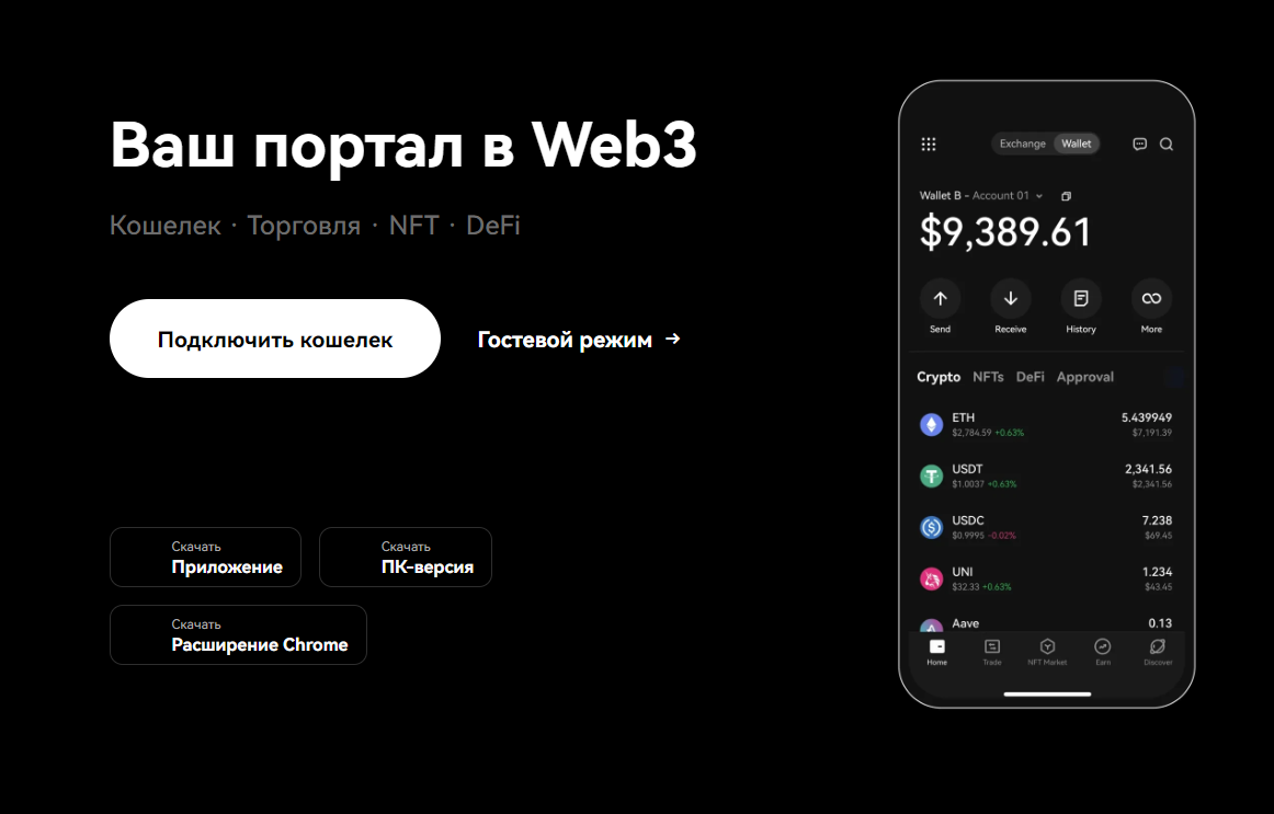 OKX Wallet — это некастодиальный кошелёк от известной криптобиржи OKX. Несмотря на связь с централизованной платформой, сам кошелёк не требует регистрации и полностью контролируется пользователем. Он поддерживает Bitcoin, Ethereum и другие сети, имеет встроенный DEX-агрегатор и NFT-галерею. Особенность OKX Wallet — высокая скорость работы и стабильность. Кошелёк регулярно обновляется, а команда активно реагирует на уязвимости. Хотя он не специализируется исключительно на биткоине, для новичков это один из самых дружелюбных вариантов с хорошей поддержкой и понятным интерфейсом.